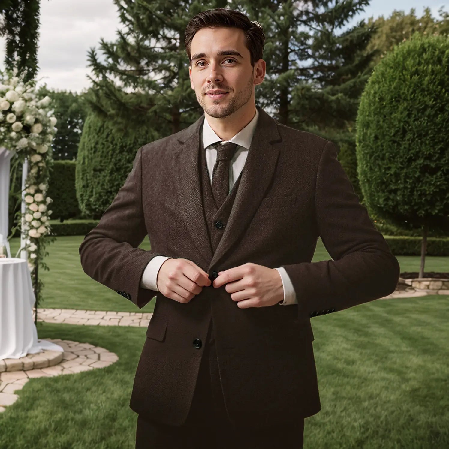 Epochtailors Tweed Suit Men's Vintage Classic Tuxedos