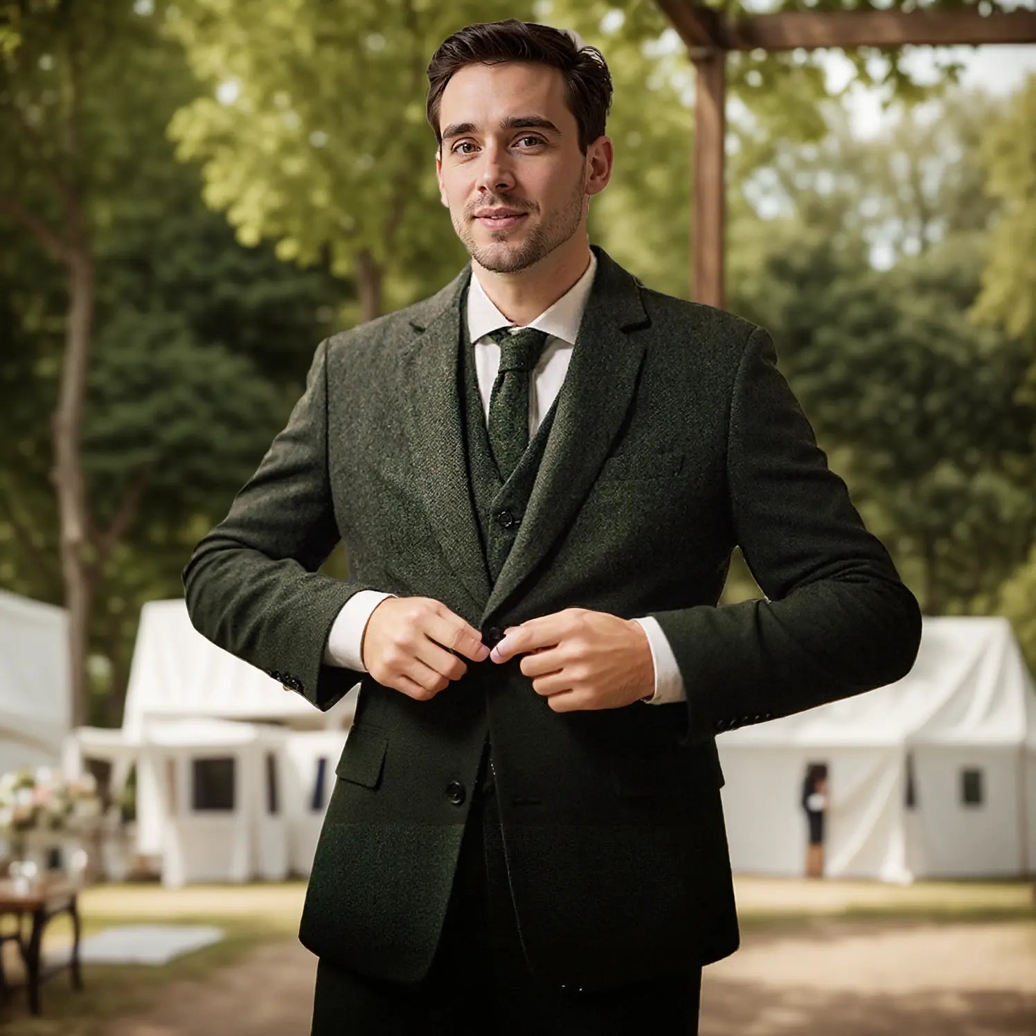 This men’s green tweed 3-piece tailcoat suit blends vintage charm with refined elegance—perfect for weddings. Available in green, coffee, our... Read more